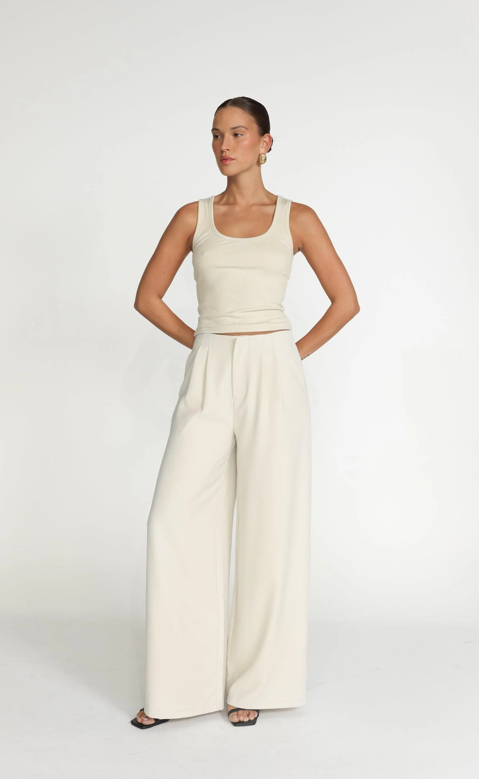 Introducing the Bethany Pants: featuring elegant pleated details on the front and a flattering high-waisted fit. These pants boast dart detailing and a wide-leg design for a sophisticated silhouette. Fully lined, they offer both comfort and style for any occasion.