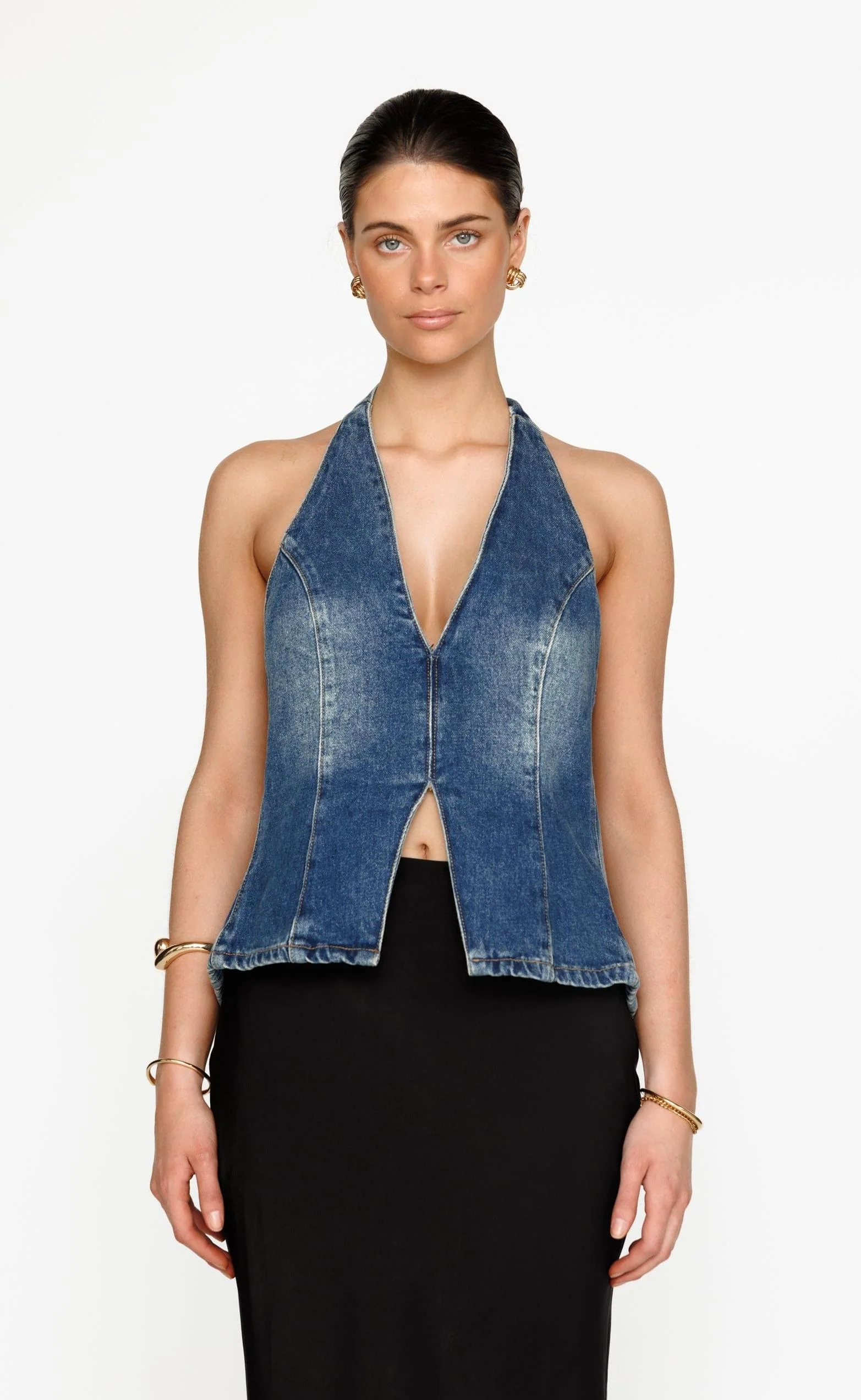 ELHAM DENIM TOP (FADED MID WASH) - CHARCOAL EXCLUSIVE