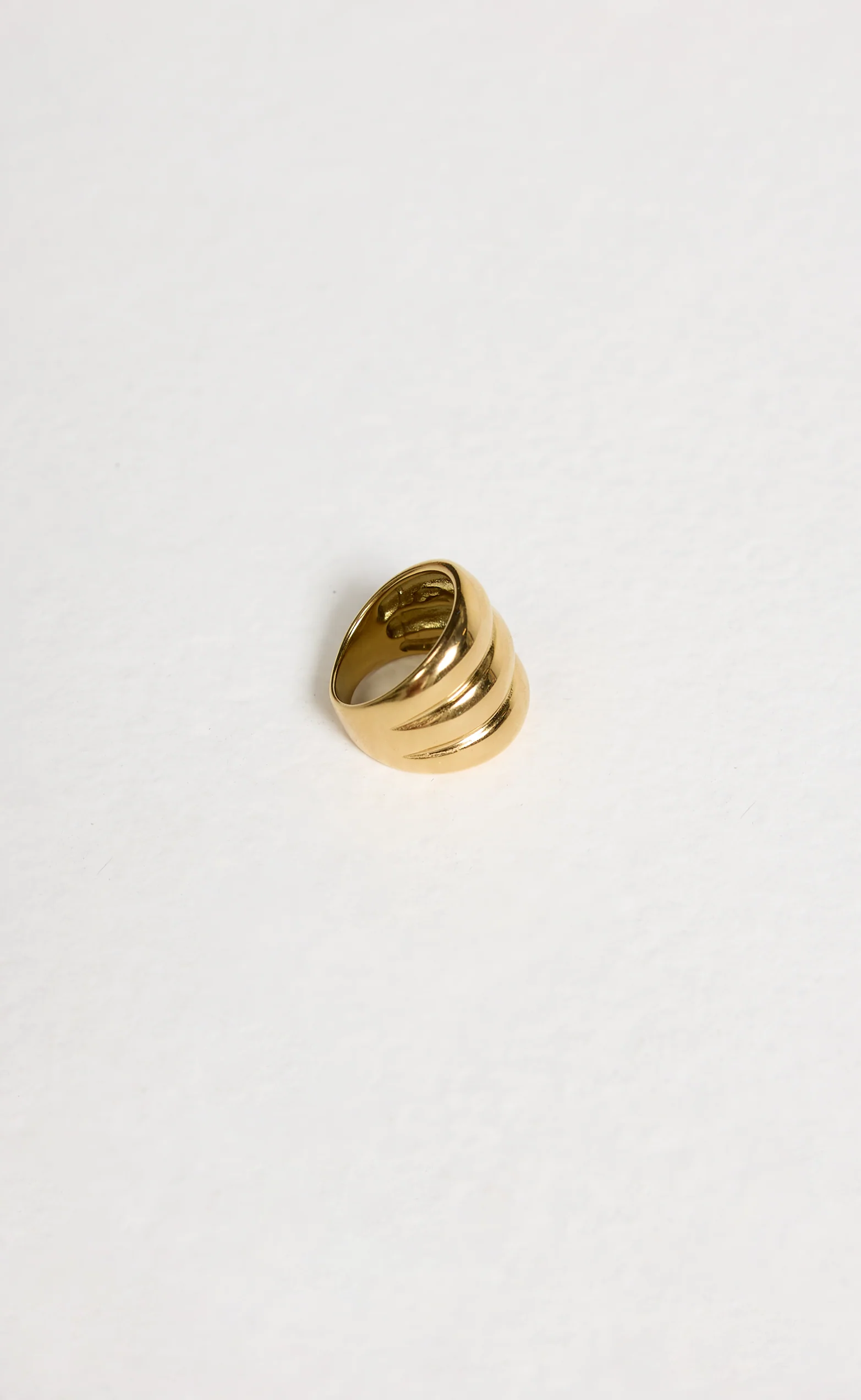 This stunning gold piece features a textured faux ring stack design, whilst offering a smooth interior. The Jasper ring is the perfect touch of bold intrigue to your everyday ring stack.